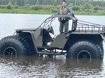 На воде погружение слишком малое и сцепления колес недостаточно для развития приличных скоростей, сами покрышки, а именно AVTOROS SALAMANDRA 650/70-21, выбрасывают большое количество воды создавая силу противодействия для движения вперед.