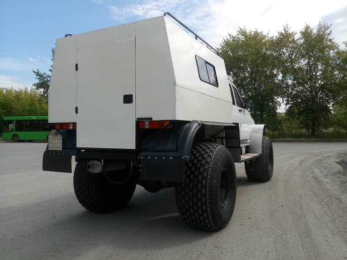 Мощная трансмиссия, алюминиевый Кунг холодного или теплого исполнения, лебедки, подкачка колес, блокировки, дополнительный запас топлива.