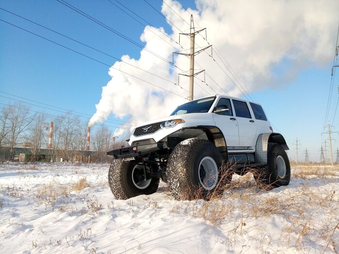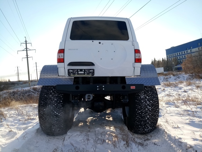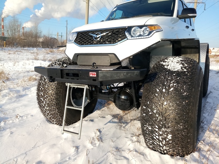 Кожаный салон, подогрев всех сидений, климатическая установка, полная шумоизоляция, внушительный запас топлива, управление подкачкой колес с места водителя, алюминиевые диски с шинами Арктиктранс 1450мм.